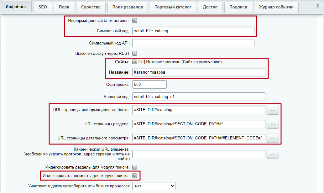 Документация Сотбит: B2B. Настройка инфоблоков. Инфоблок товаров