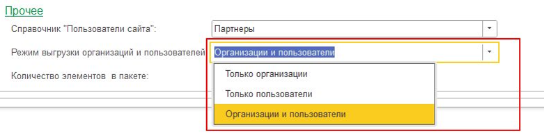 Выгрузка организаций и пользователей позволяет выбрать режим выгрузки: