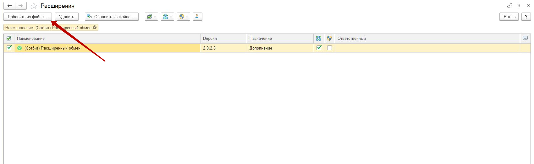 Выбрать расширение Сотбит. Модуль обмена.cfe.