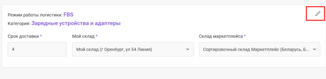 Если для категории товаров поставщиком не выбраны условия логистики, все товары из данной категории будут неактивными и недоступными для продажи до тех пор, пока не будет выбраны условия.